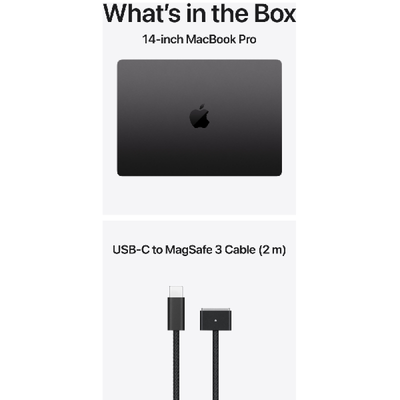Let op: Deze Mac wordt geleverd met een USB C-naar-MagSafe 3-oplaadkabel. Er wordt geen lichtnetadapter meegeleverd. Voor het opladen van dit device heb je een USB C PD-lichtnetadapter van 60 W nodig. Voor optimaal opladen raadt Apple aan om deze Mac te combineren met de Apple USB C-lichtnetadapter van 70 W of de Apple USB C-lichtnetadapter van 96 W voor snelladen.