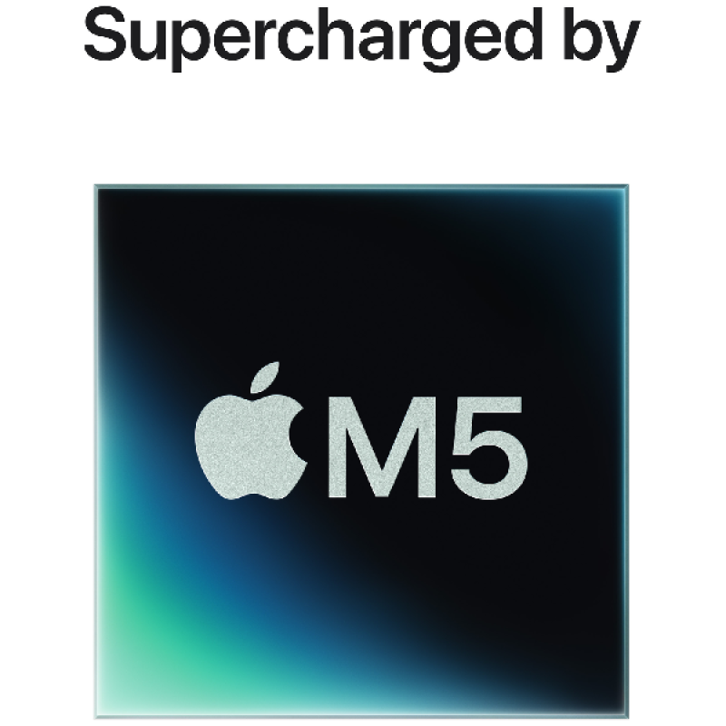 Naast een snellere CPU en centraal geheugen heeft M5-chip ook een krachtigere GPU met een Neural Accelerator in elke core, waardoor de AI-prestaties nog sneller zijn. Zo zijn zelfs intensieve workloads in no time klaar. De GPU van M5 bevat verbeterde shader-cores en een raytracing-engine van de derde generatie. Daarmee voelen je games extra realistisch en levensecht. En dankzij macOS draaien al je favorieten, zoals Microsoft 365 en Adobe Creative Cloud, razendsnel.