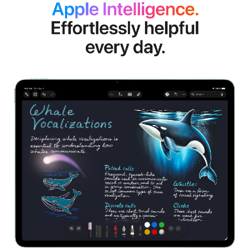 De M4chip levert geavanceerde graphics en ongekende prestaties voor vlot multitasken en complexe AItaken. Bovendien gaat de batterij de hele dag mee, zodat je overal kunt blijven werken en gamen. Kies tot wel 1 TB opslag voor je apps, muziek, films en nog veel meer. Tot slot is Apple Intelligence je persoonlijke intelligentiesysteem dat je helpt creëren, communiceren en meer gedaan krijgen, terwijl geavanceerde technologieën je privacy bij elke stap beschermen.