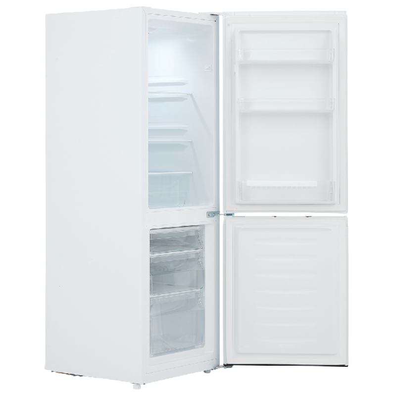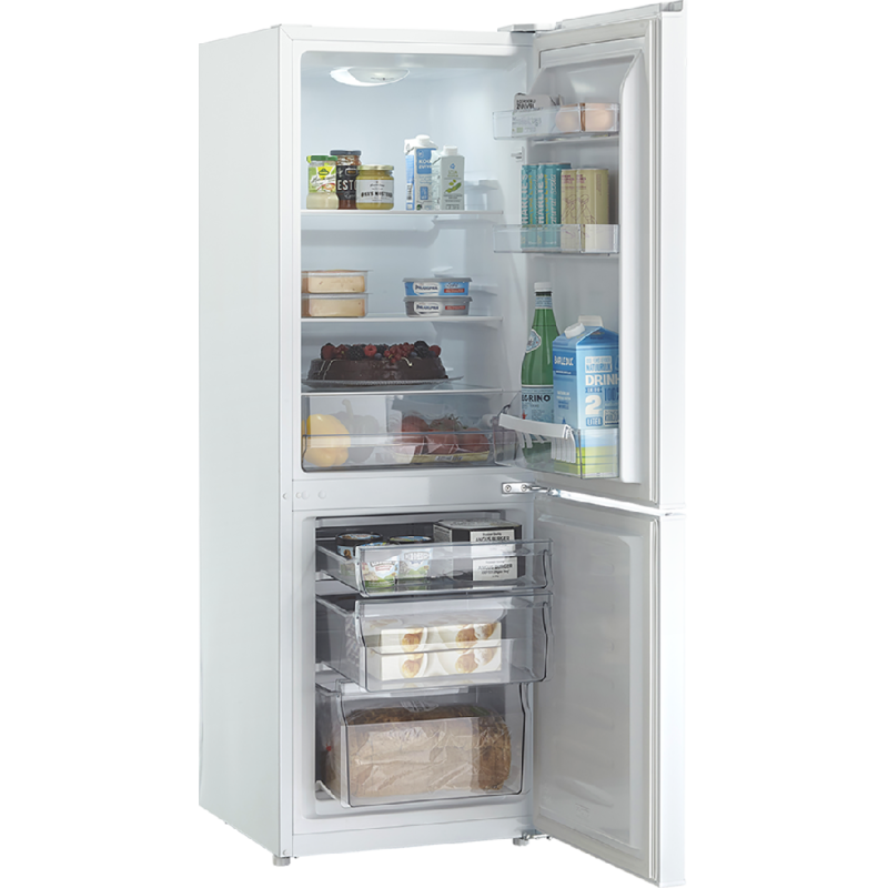 De ijskast is uitgerust met een totaalinhoud van 175 liter. Dit is ruim genoeg om al jouw voedingswaren in te bewaren. De inhoud is verdeeld over een koelgedeelte van 122 liter en een vriesgedeelte van 53 liter. Het koelgedeelte is voorzien van 3 deurvakken, 3 glazen plateaus en een ruime, transparante koellade. Er zijn 2 plateaus in hoogte verstelbaar, zodat je de ruimte creëert die je nodig hebt. Het diepvriesgedeelte is uitgerust met 3 transparante lades die extreem lage temperaturen bereiken. Jouw diepvriesproducten blijven hierin dus extra lang houdbaar.