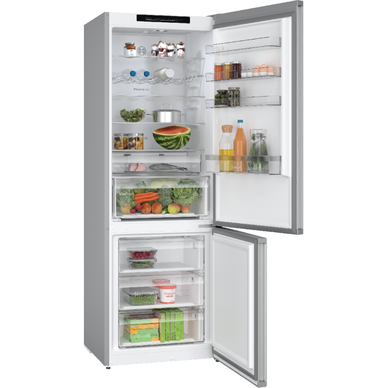 De Bosch KGN49XIEA is een extra brede (70 cm) vrijstaande koel-diepvriescombinatie met een totale inhoud van 400 liter. Omdat de vriezer voorzien is van NoFrost hoef je deze vriezer nooit meer te ontdooien. De koelkast is ook voorzien van lades met VitaFresh waardoor je groente en fruit langer vers blijven.